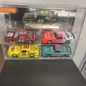 Five Die-Cast Cars and Display Case
