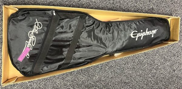 Dale Earnhardt Tribute Concert Epiphone guitar signed by Teresa Earnhardt comes with a black zip up guitar bag to carry it in.