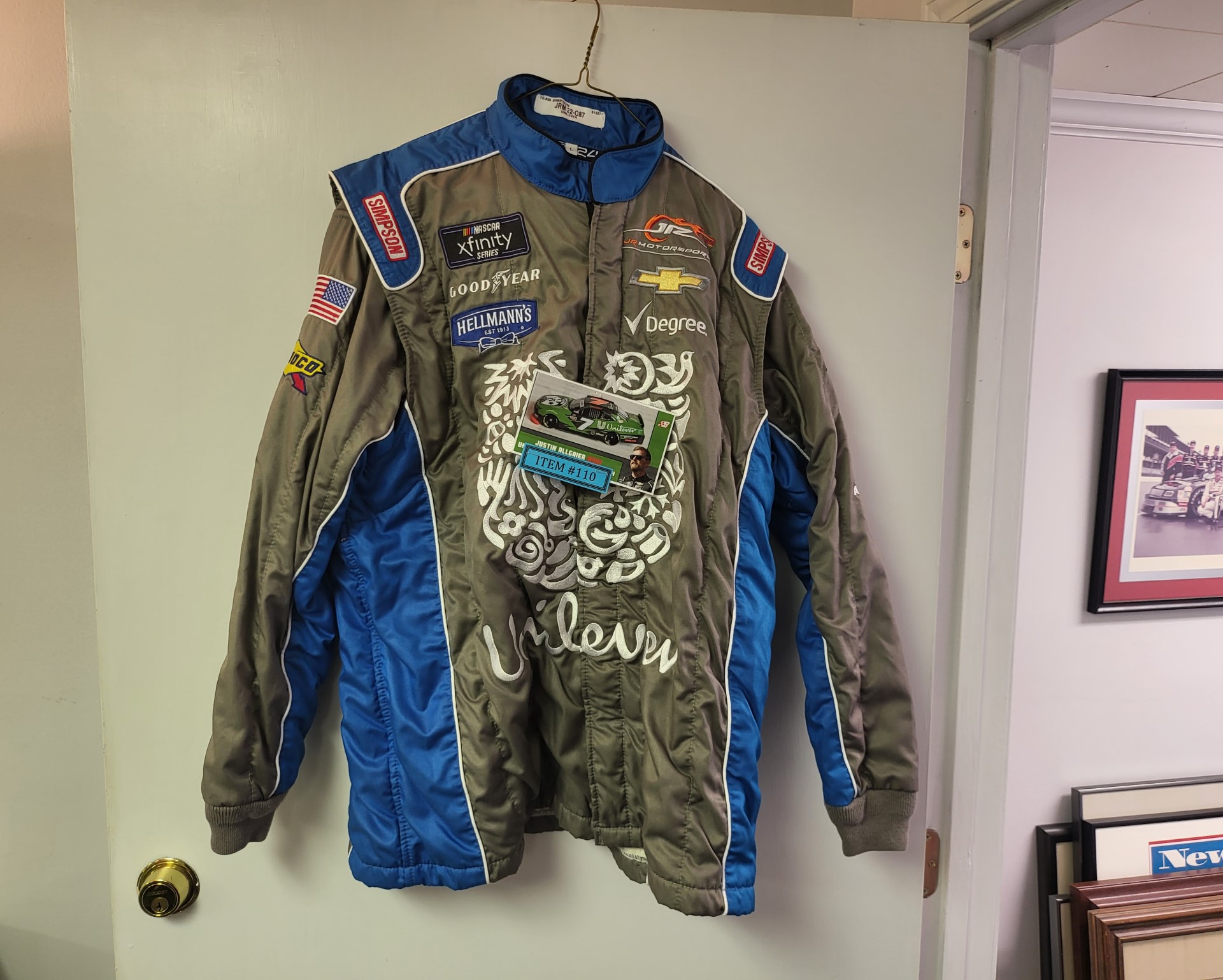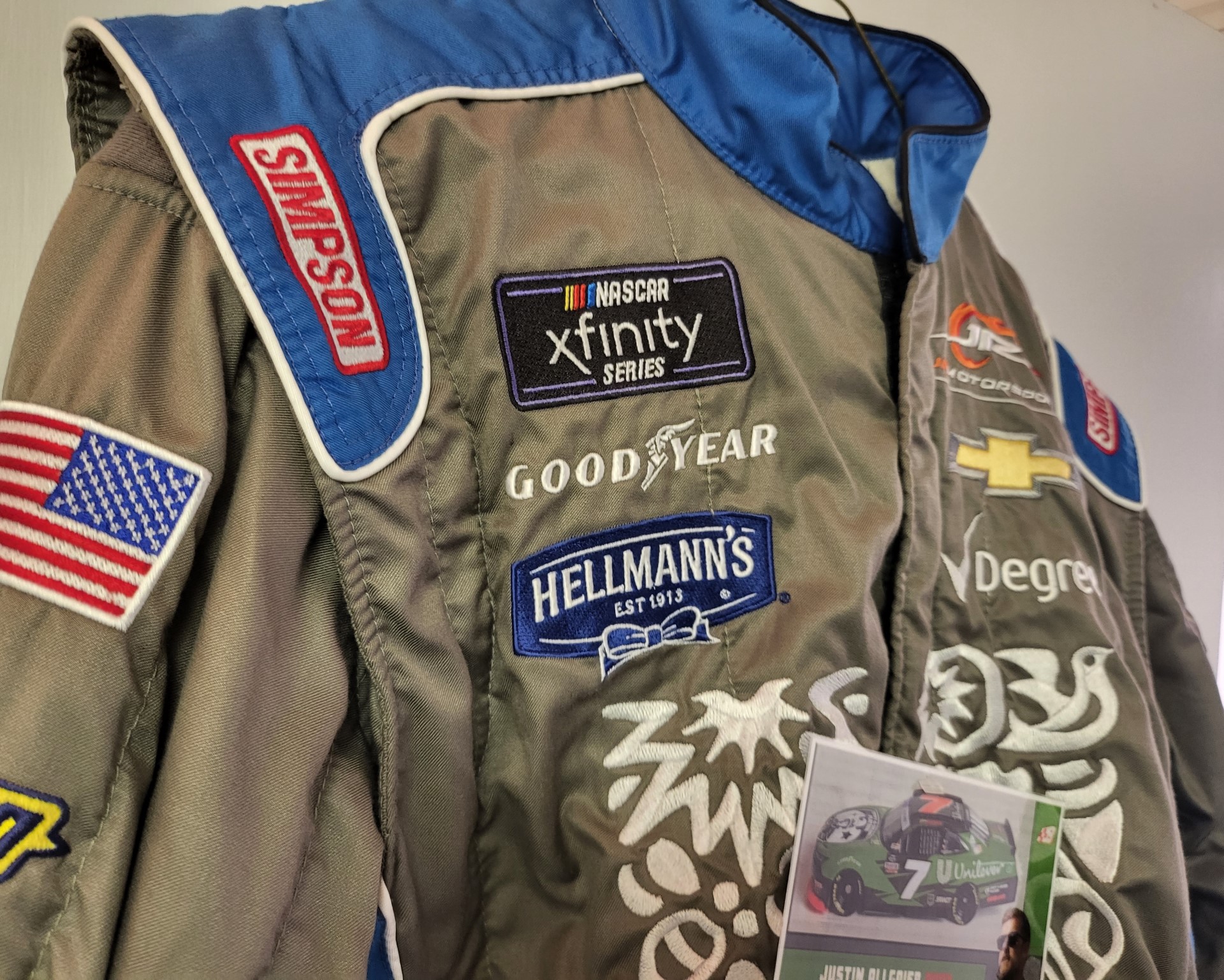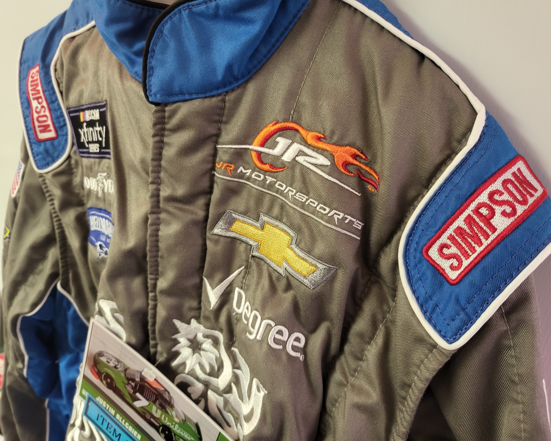 This is a Pit Crew uniform from the #7 Jr. Motorsports Xfinity series team- car sponsor is "Unilever" - driven by Justin Allgaier