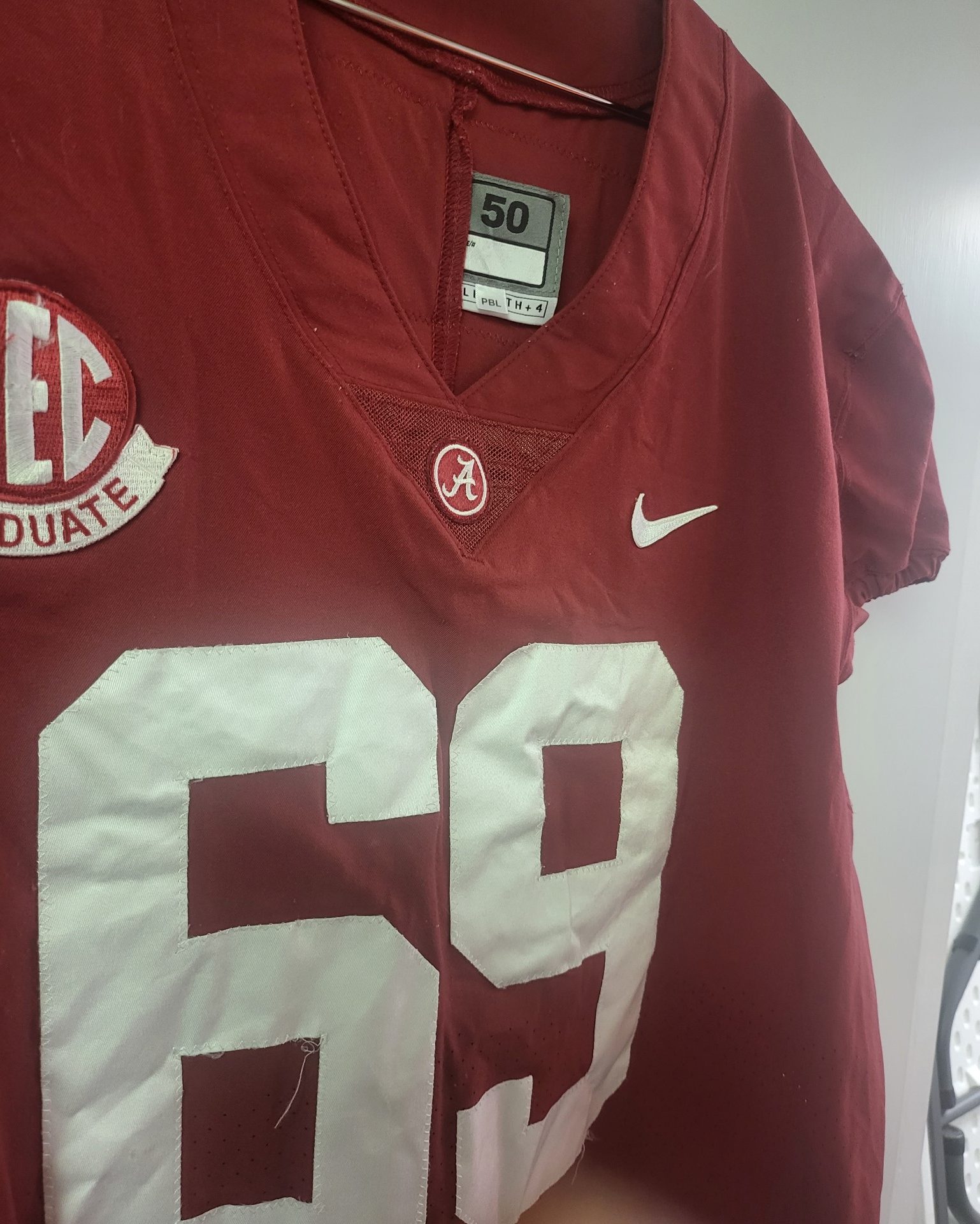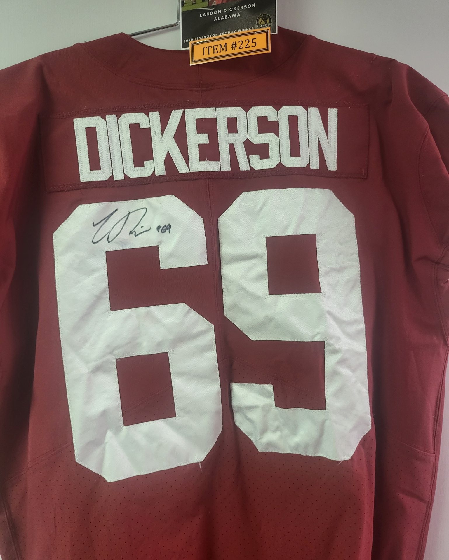 This is an authentic Alabama Crimson Tide football jersey, worn and signed by Landon Dickerson